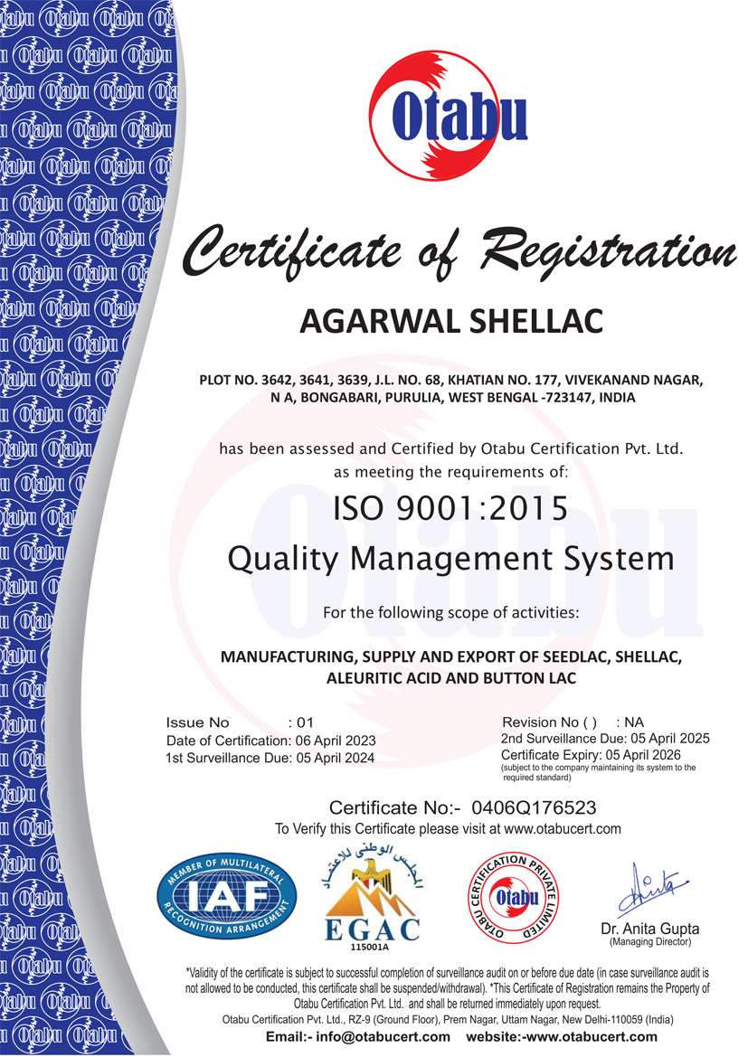 Agarwal Shellac exists among prominent shellac and lac-based products manufacturers in India, We started our journey as manufacturers in the year 2000. It is a traditional business carried away by our forefathers, and we have accumulated more than 45 years of experience in this field. Situated in the Lac manufacturing belt in Purulia, Agarwal Shellac went into the production of value-added Lac products under the dynamic leadership of Mr. Sandip Kumar Agarwal with an industry experience of over 35 years. We procure the best quality stick lac from multiple states of India to manufacture and deliver to our partners. Agarwal Shellac, a company that focused on enhancing businesses, equally vital to protect the interest of tribal growers of raw Lac and traders to ensure an uninterrupted supply of quality raw material to our plants throughout the year, does a fantastic job. Over a time span of four-decade, it has been acclaimed to be the best quality Seedlac manufacturer, quality-driven, reliable & trusted supplier in India.